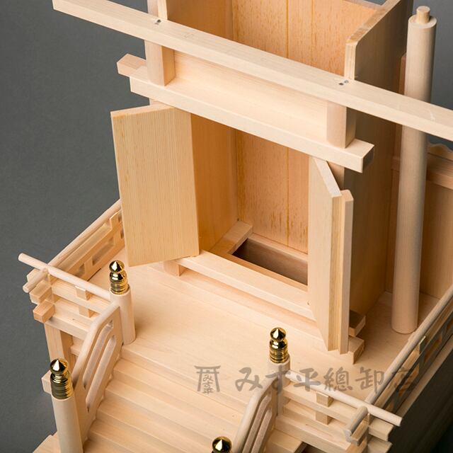 また、このお宮は扉内の床が一部抜いてありますので背の高い(30cm)お札でも納めることが出来ます。