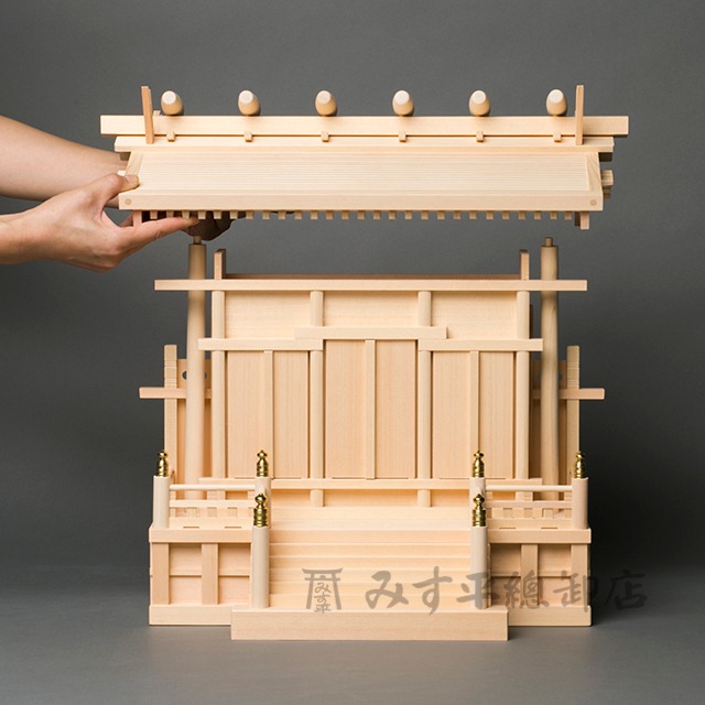 屋根全体を上に持ち上げて頂けば屋根を外すことも出来ますので御札を納める際に便利です。