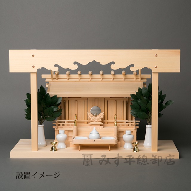 このセットは棚板間口2尺(60cm)をご使用の方、または一社宮サイズ6寸、神明宮サイズ6寸、箱宮サイズ1尺5寸、横通三社宮サイズ1尺5寸、をお飾りされる方にお勧めの大きさです。
