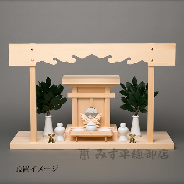 このセットは棚板間口3尺6寸5分(1m10cm)をご使用の方、または横通三社宮サイズ2尺、2尺5寸、箱宮サイズ2尺5寸、3尺をお飾りされる方にお勧めの大きさです。