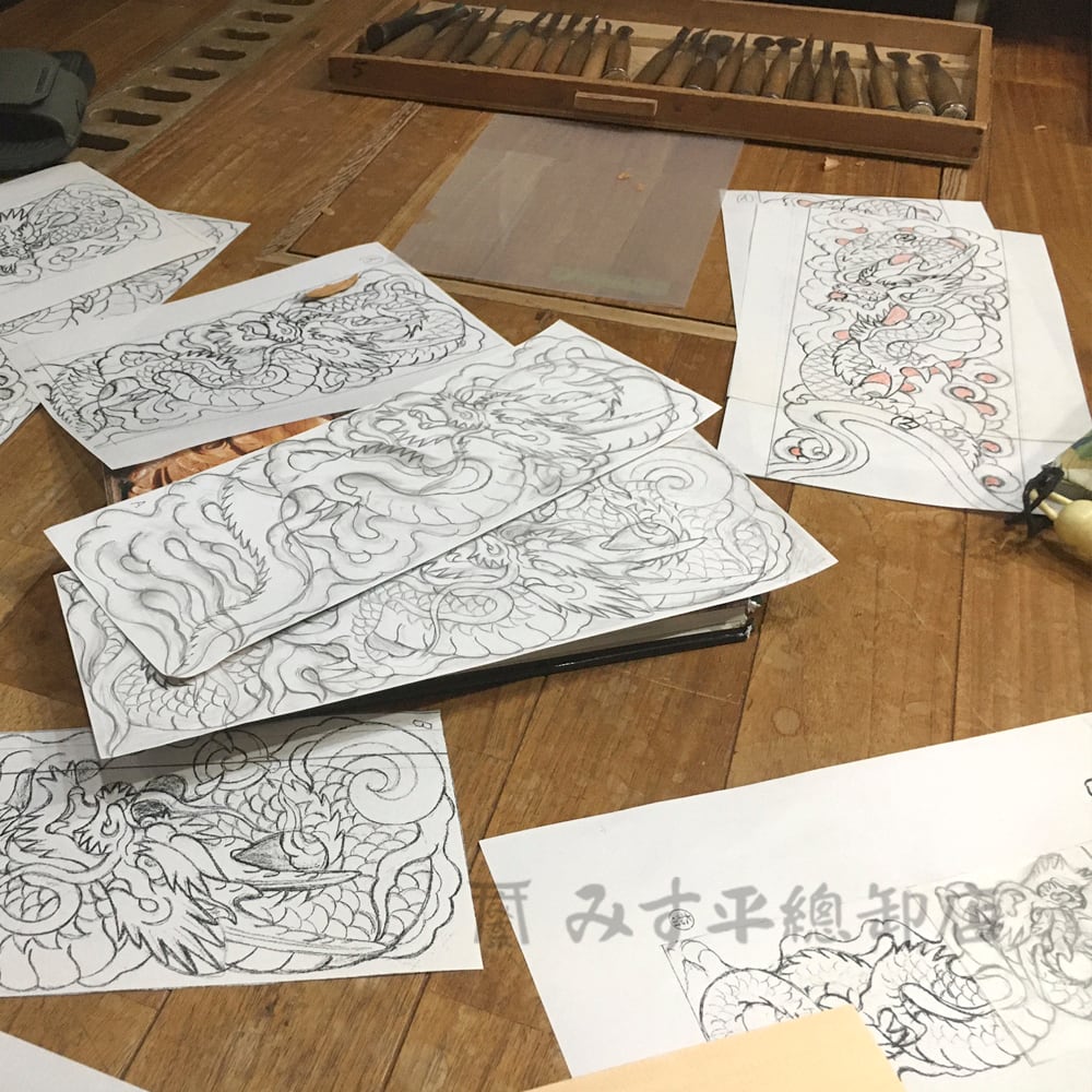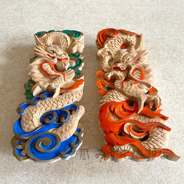 こちらの双龍はそのような貴重な一枚板の柾目部分に職人が原画から書下ろし、ひとつひとつ丁寧に彫り上げた作品です。