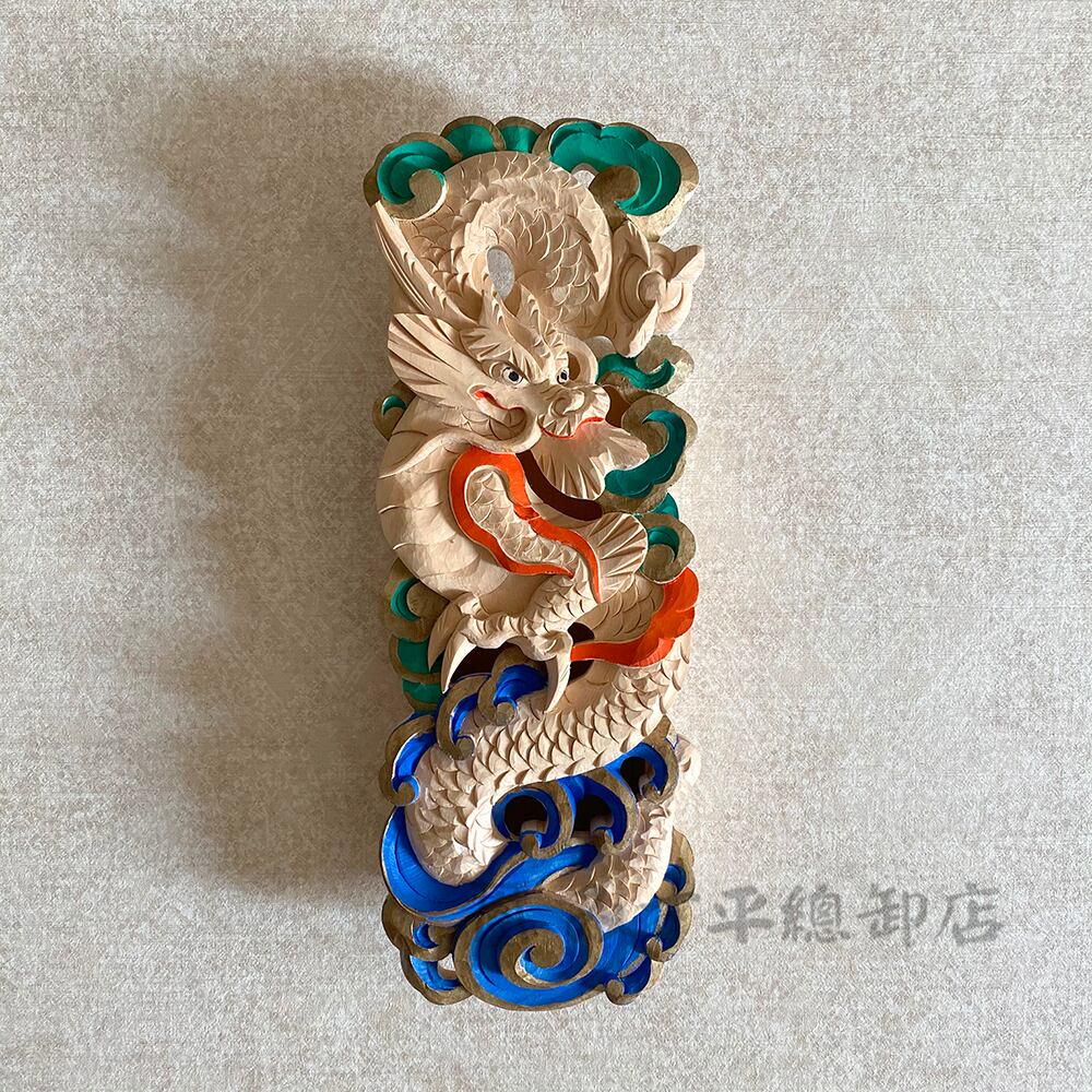 壁掛けお札入れ 手彫り〈雲龍・彩色〉