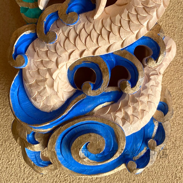 彩りを加えることで彫刻の華やかさと豪華さ、目に飛び込む迫力や豊かさをアップさせています。